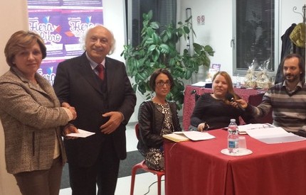 Note: con questa bellissima fotografia, il sito web evidenzia il momento della premiazione dell'autrice da parte dell'editore Vincenzo Grasso: |
